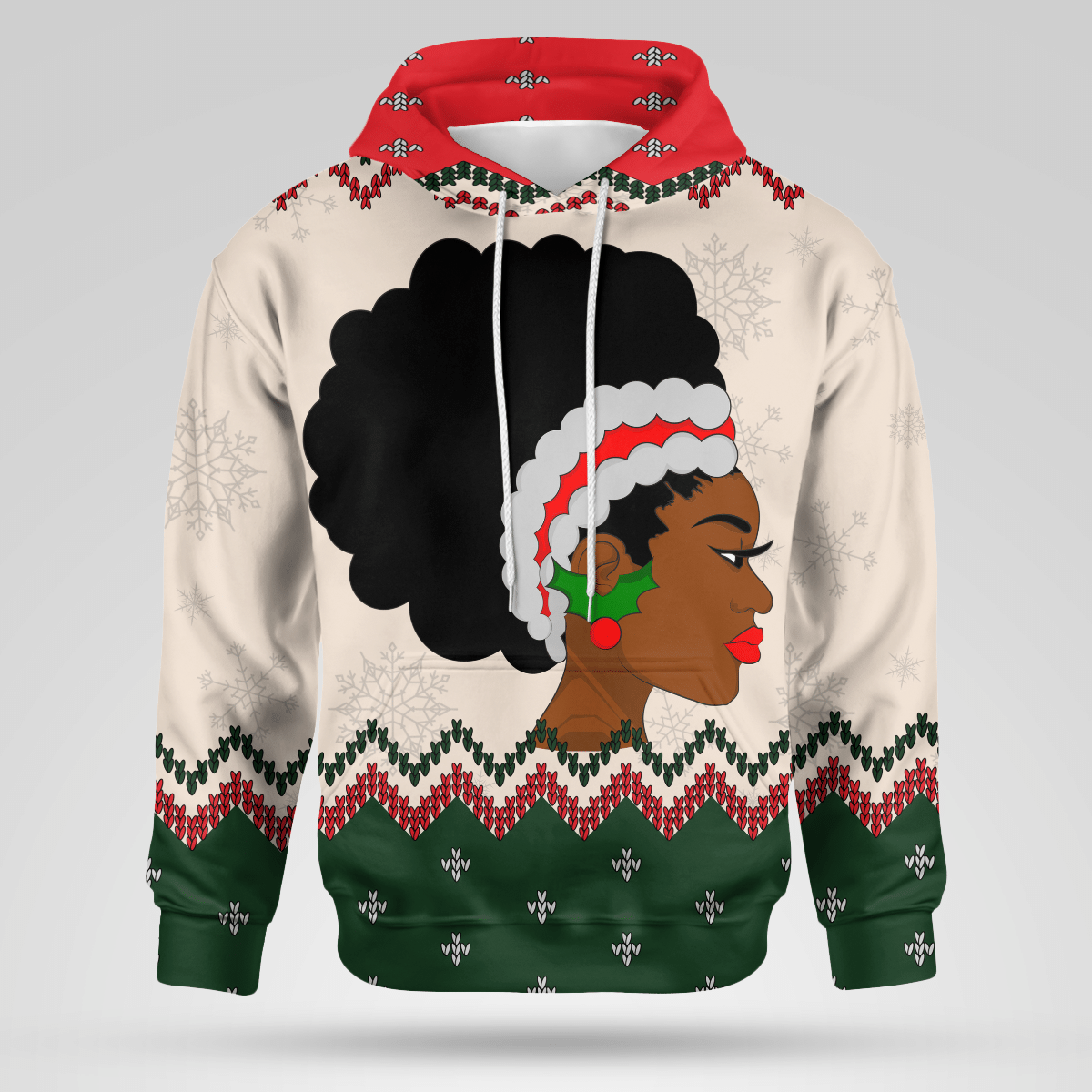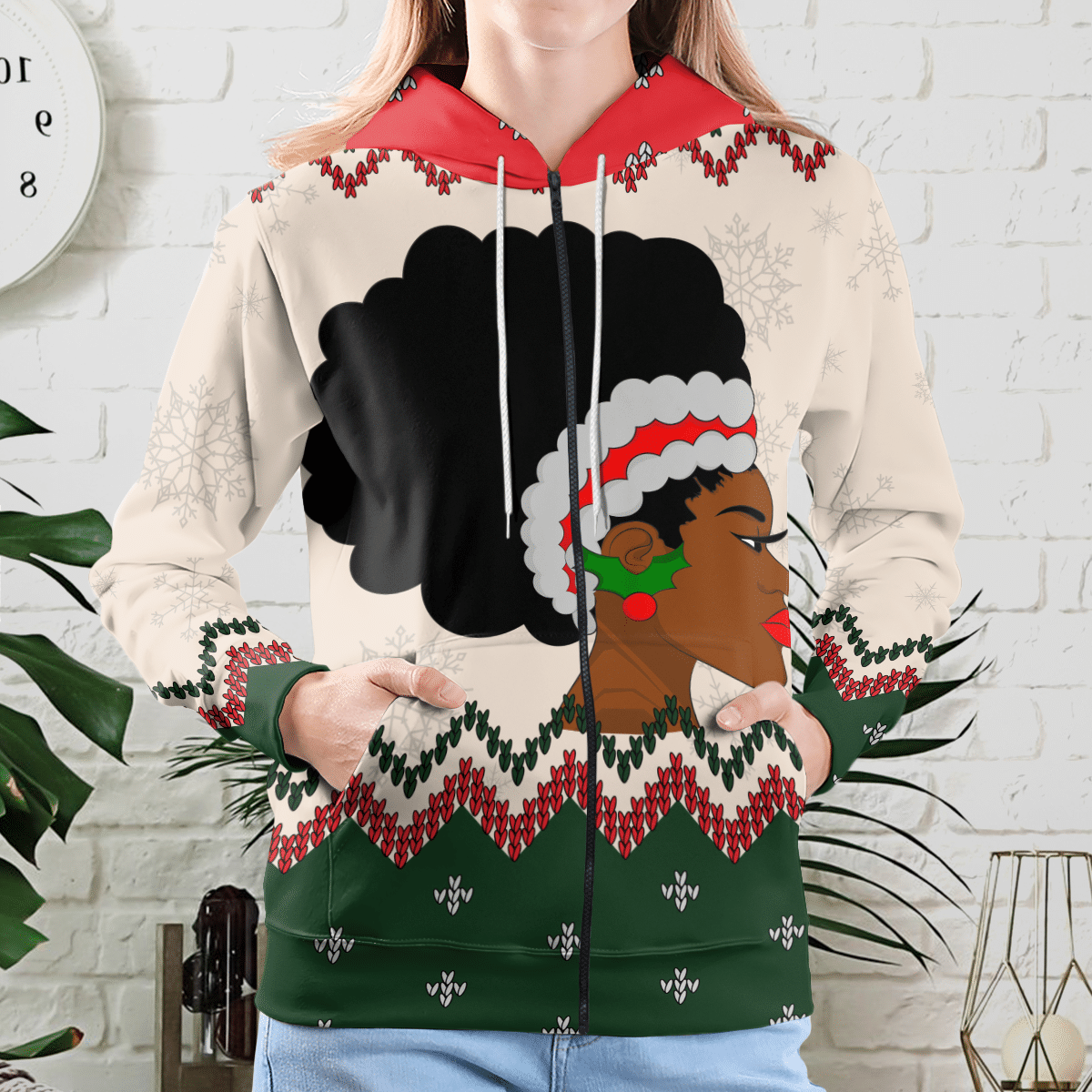 Afro Women Christmas Hoodie For Black Girl Hoodie Santa Claus Hoodie For Black Women