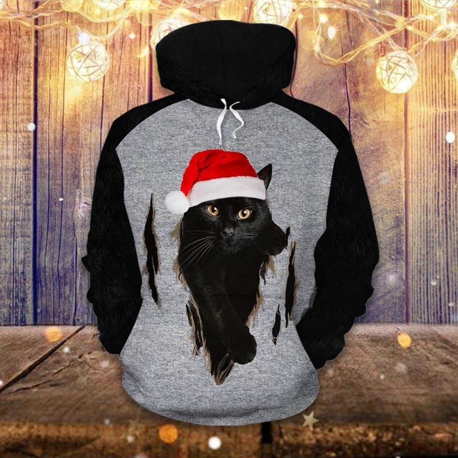 Black Cat Meowy Christmas 3D Hoodie Legging Set Combo