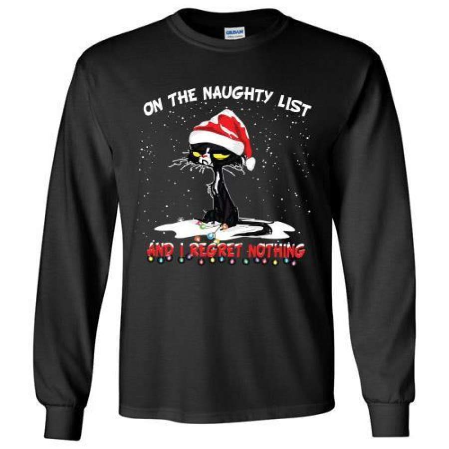 Black Cat Santa on the naughty list and I regret nothing christmas Long Shirt