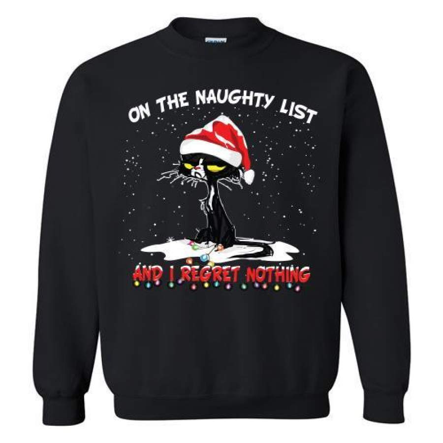 Black Cat Santa on the naughty list and I regret nothing christmas Sweatshirt