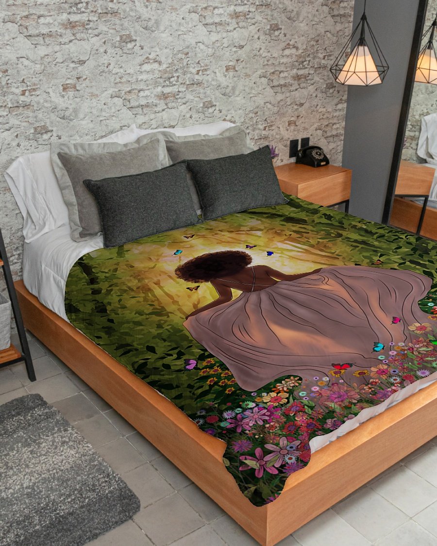 Black Women Art – Natural Forest Princess Angel Fleece Blanket – Quilt Blanket