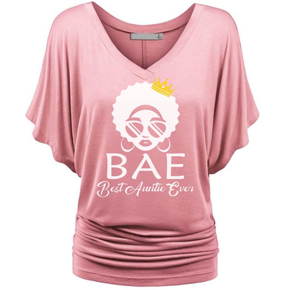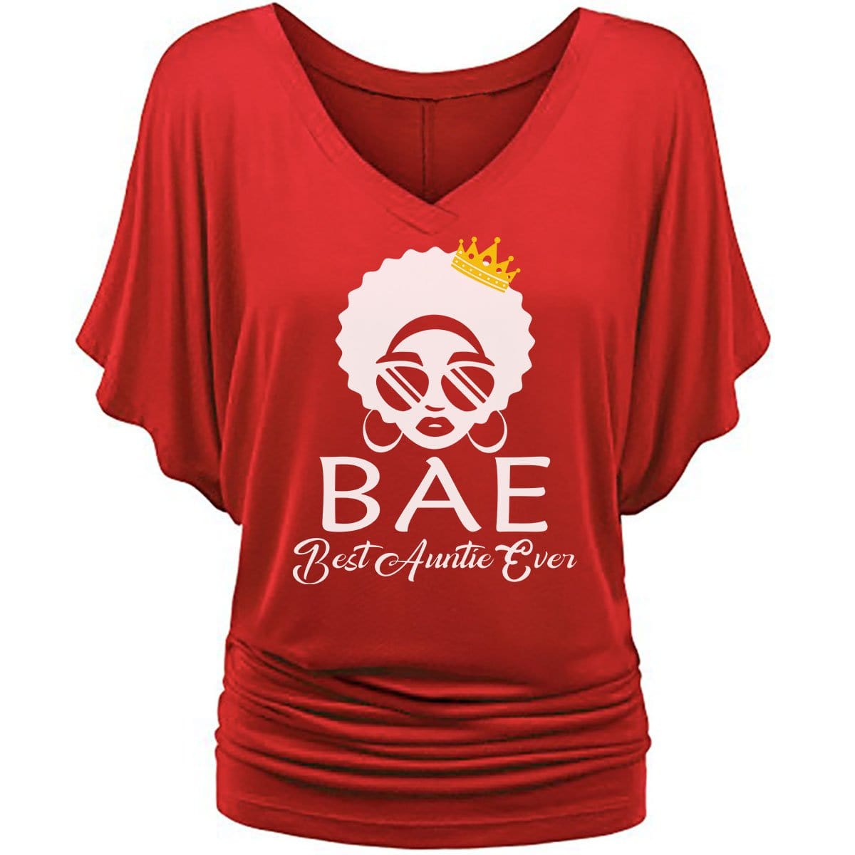 Black Women BAE Best Auntie Ever Batwing V-Neck Afro Girl T-Shirt