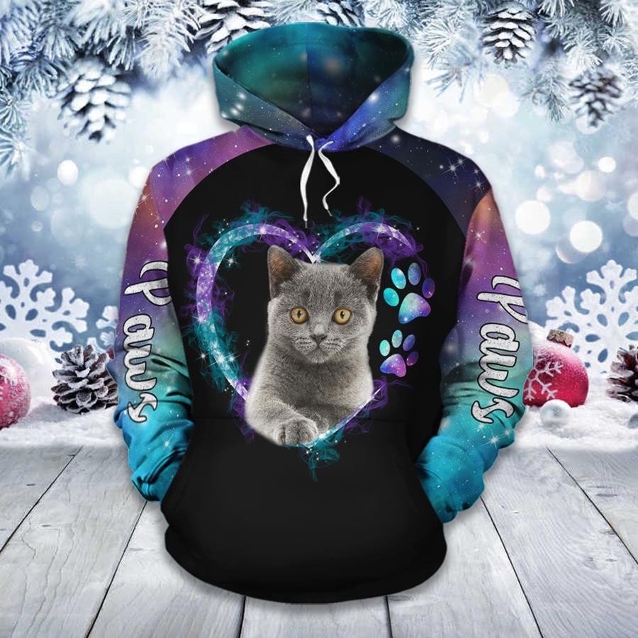British Shorthair Cat Paws Heart 3D Hoodie Legging Set Combo