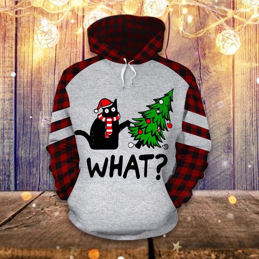 Cat What Cat Christmas 3D Hoodie Legging Set Combo