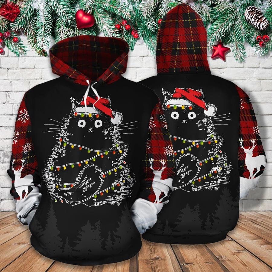 Christmas Cat Red Plaid Patterns 3D Hoodie Legging Set Combo