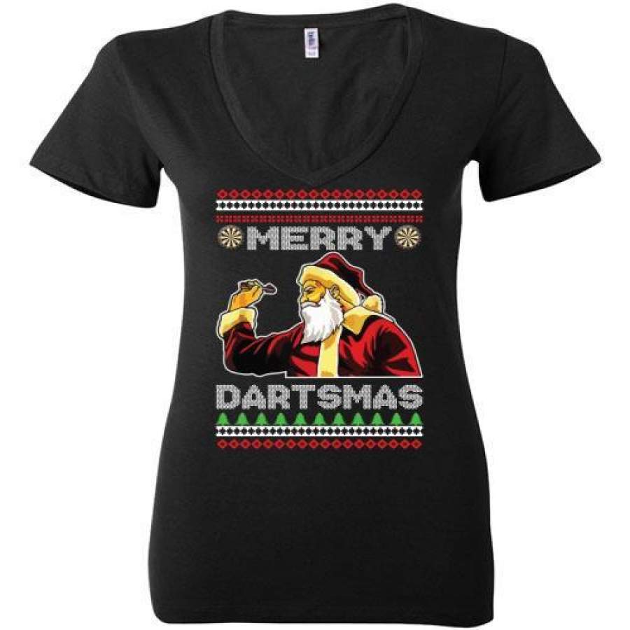 Darts Merry Dartsmas Christmas Ladies Deep V-Neck