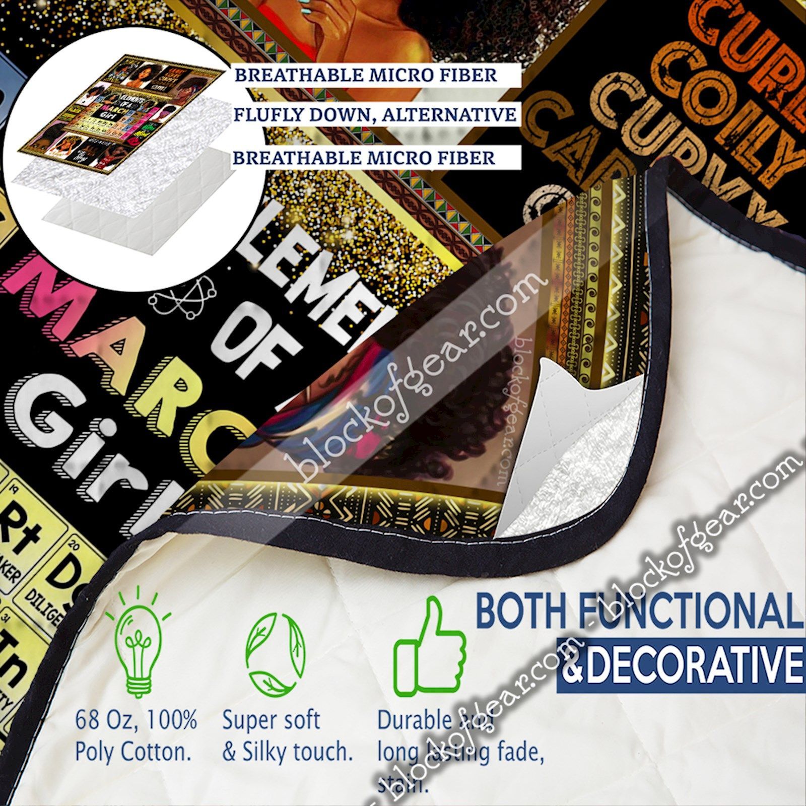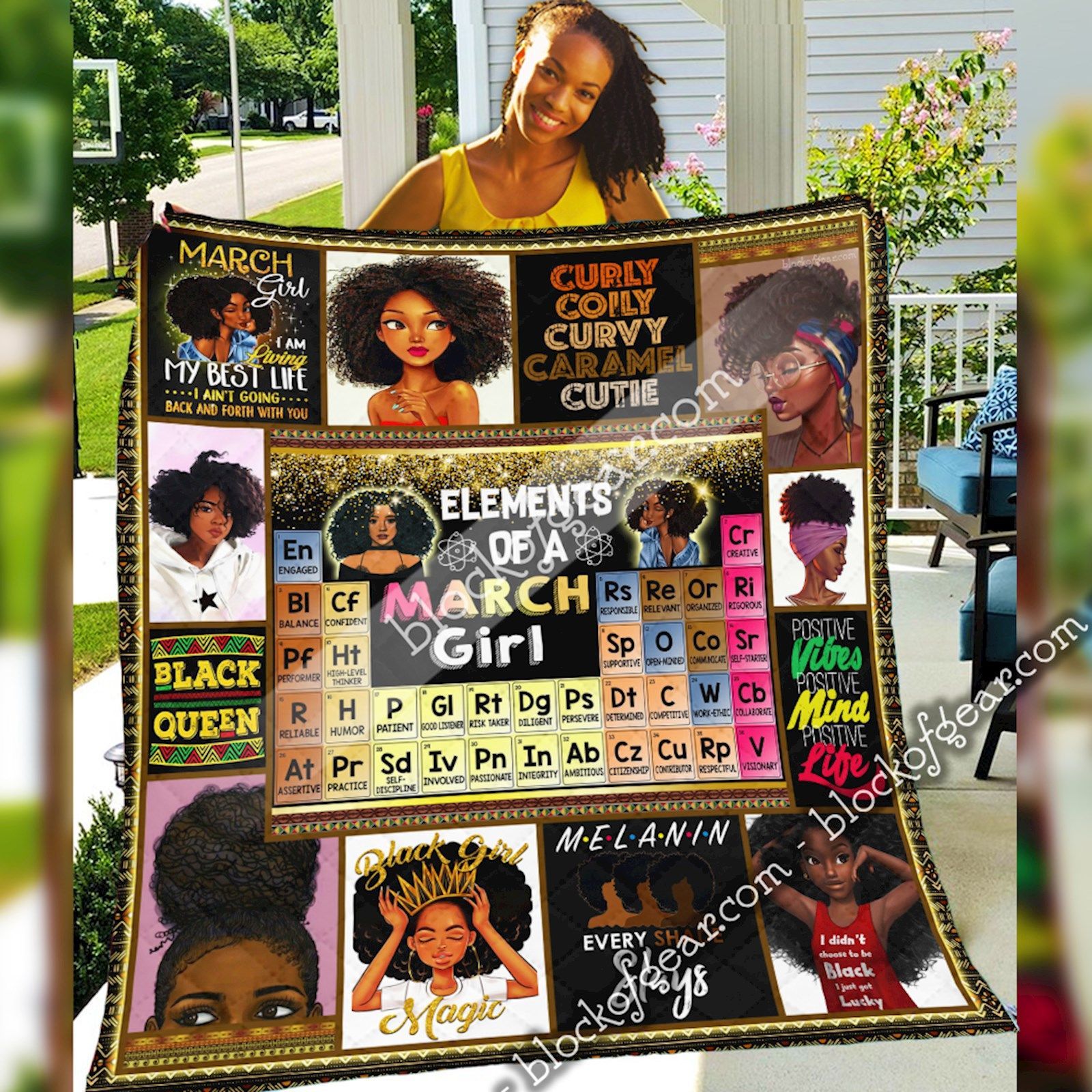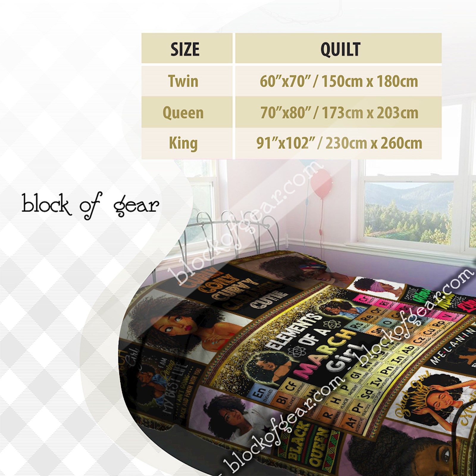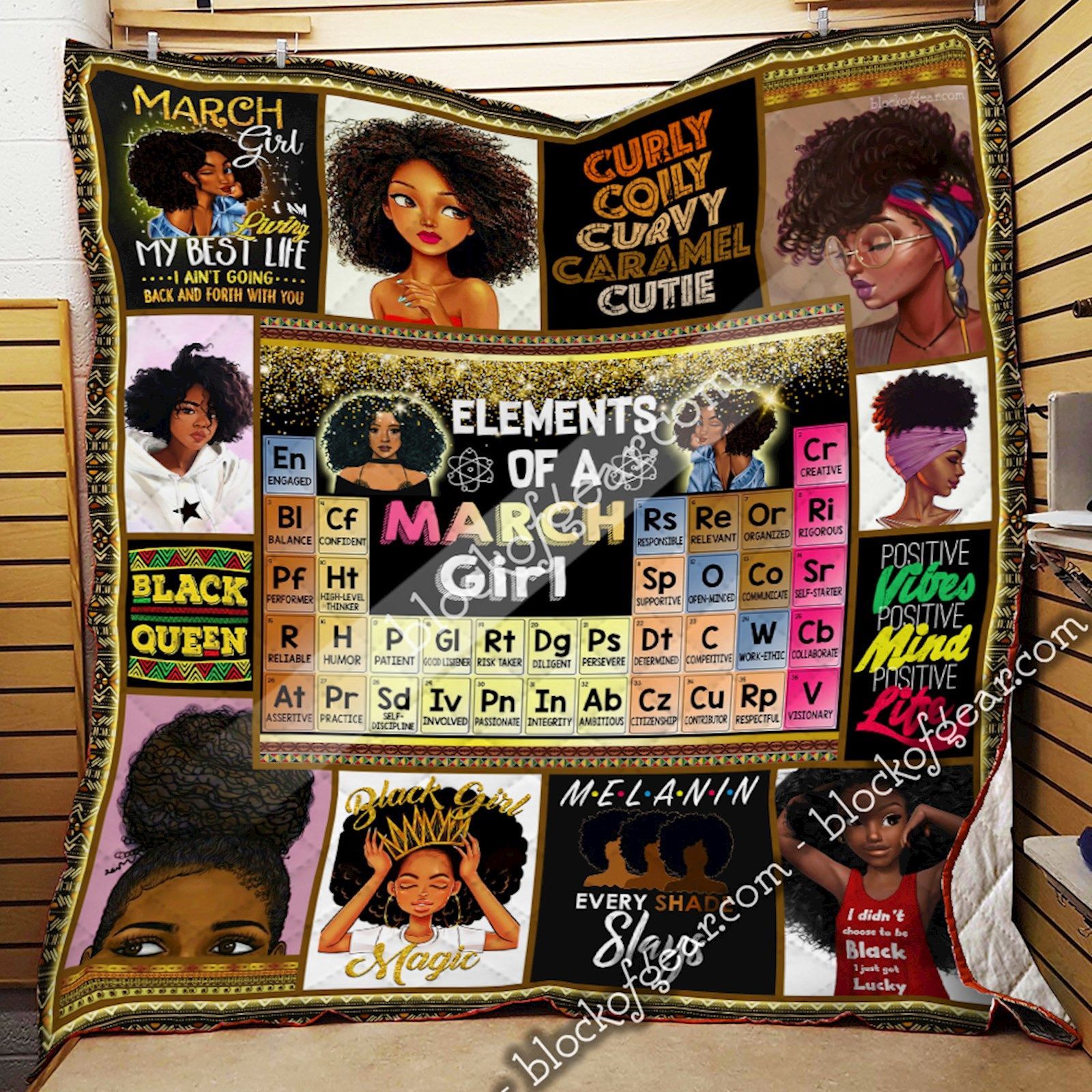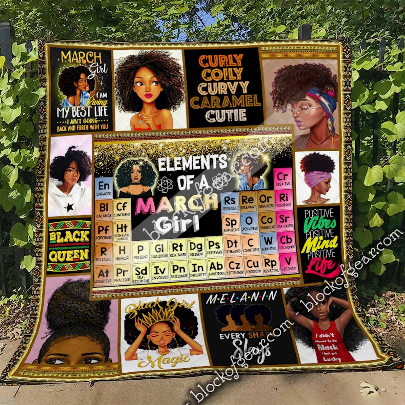 Elements Of A March Girl, Black Queen Quilt