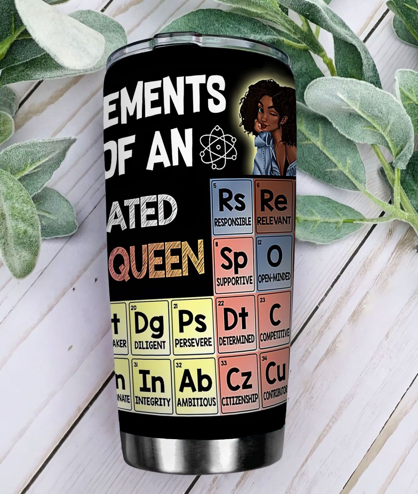 Elements Of An Afro Women, Educated Black Queen Stainless Steel Tumbler