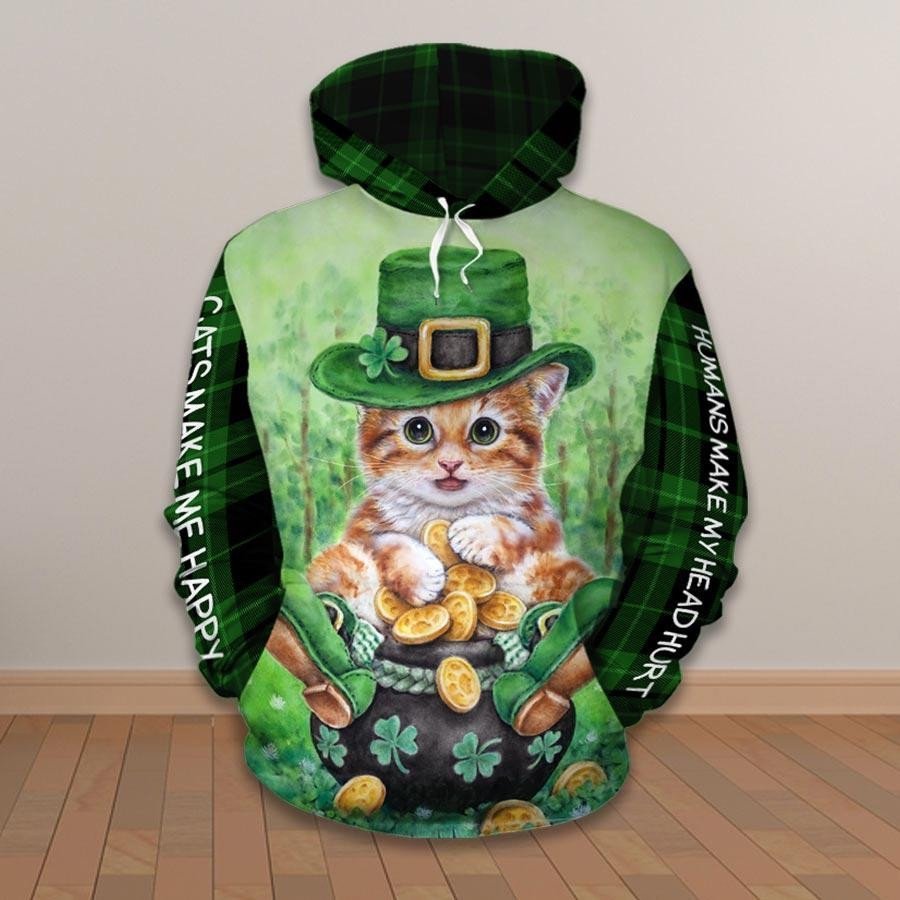 Green Cats Make Me Happy 3D Hoodie Legging Set Combo