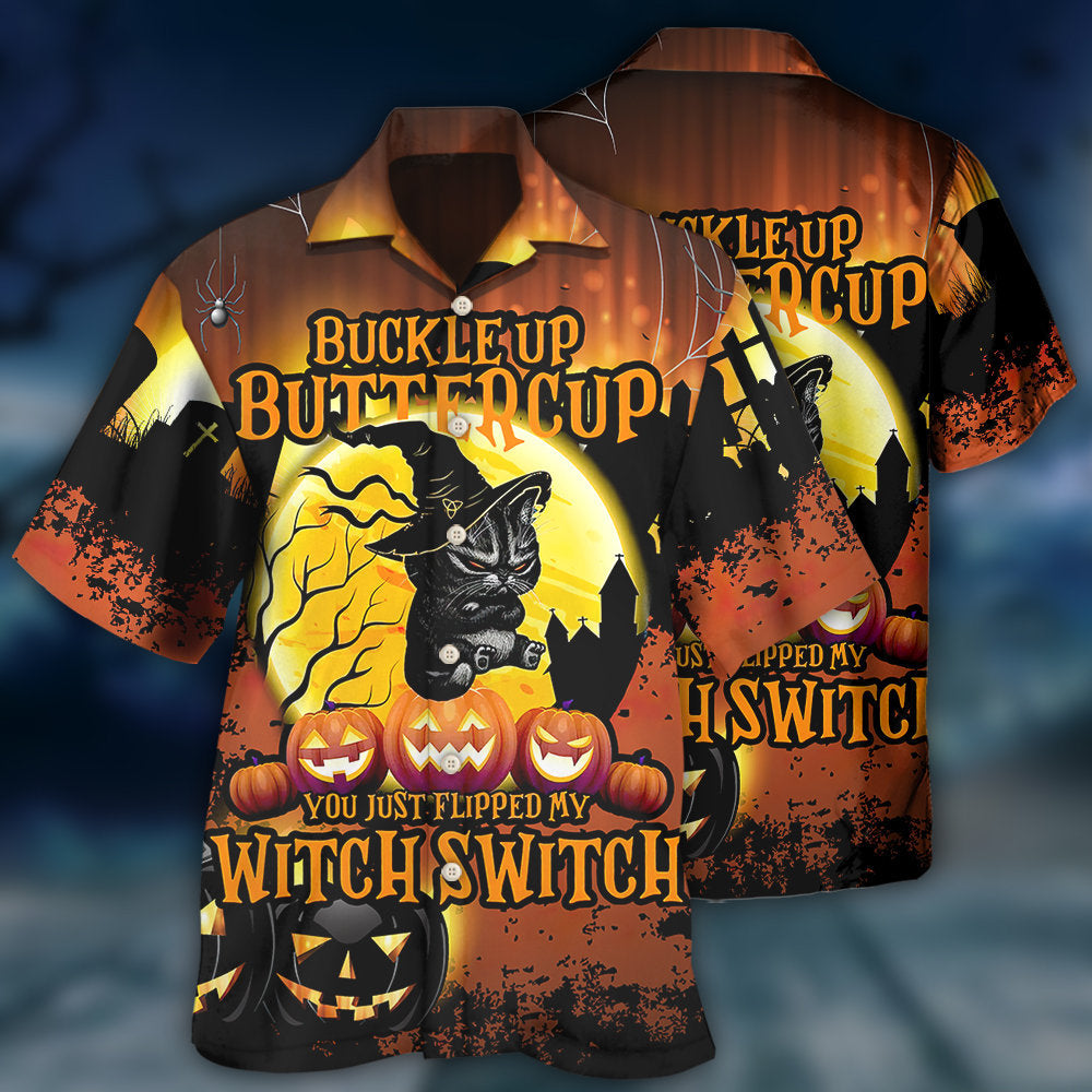 Halloween Cat Buckle Up Buttercup Hawaiian Shirt