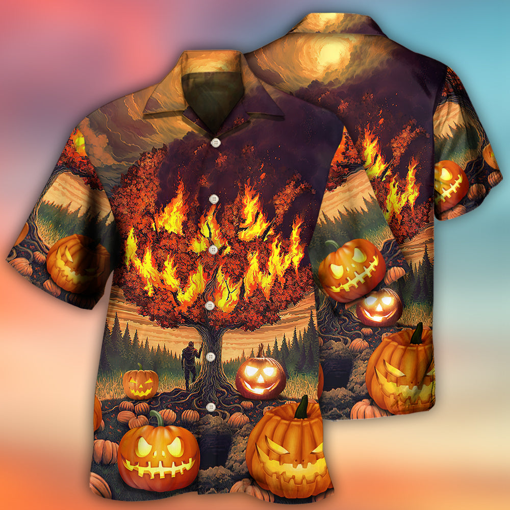 Halloween Pumpkin Burning Crazy Style Hawaiian Shirt