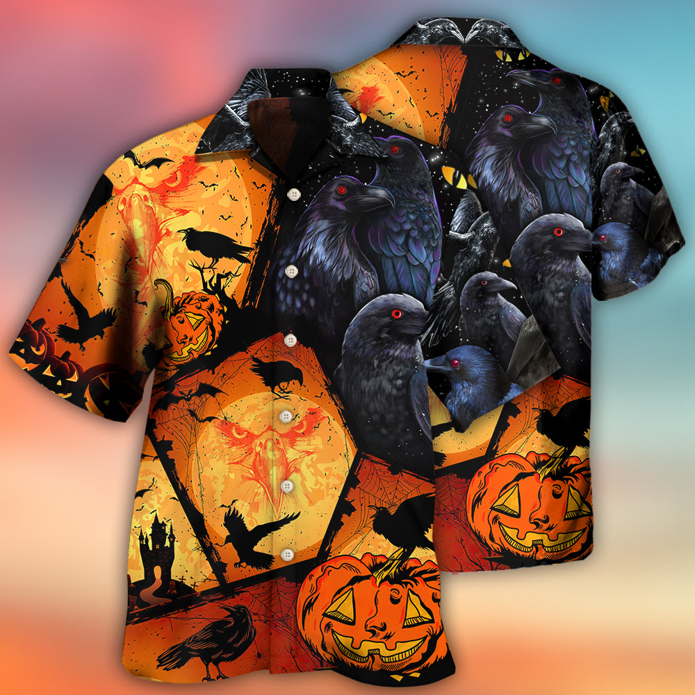 Halloween Raven Pumpkin Scary Hawaiian Shirt