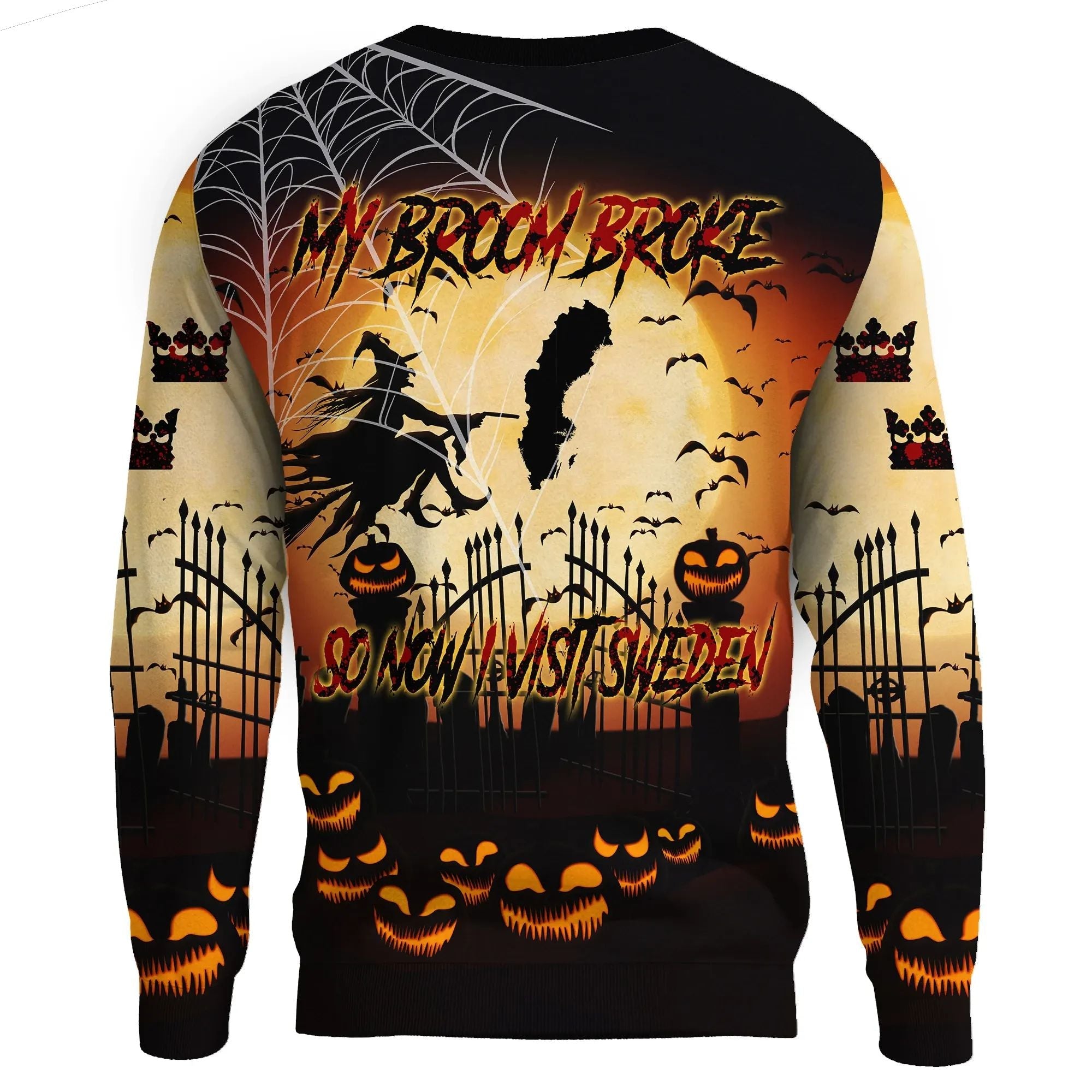 Halloween Sweatshirt My Broom Broke So Now I Visit Sweden Rlt7