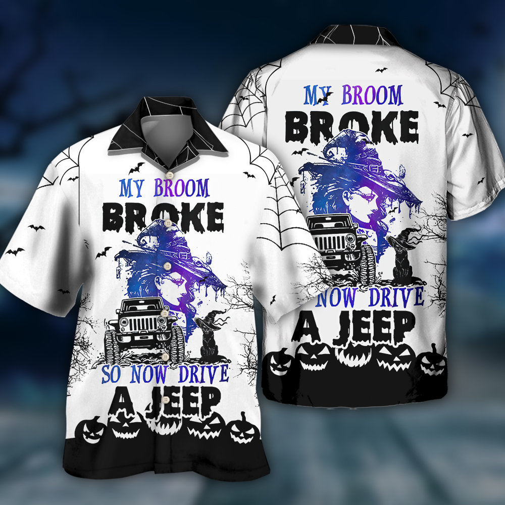 Halloween Witch My Broom Broke Hawaiian Shirt