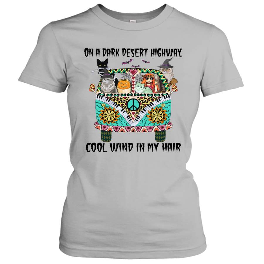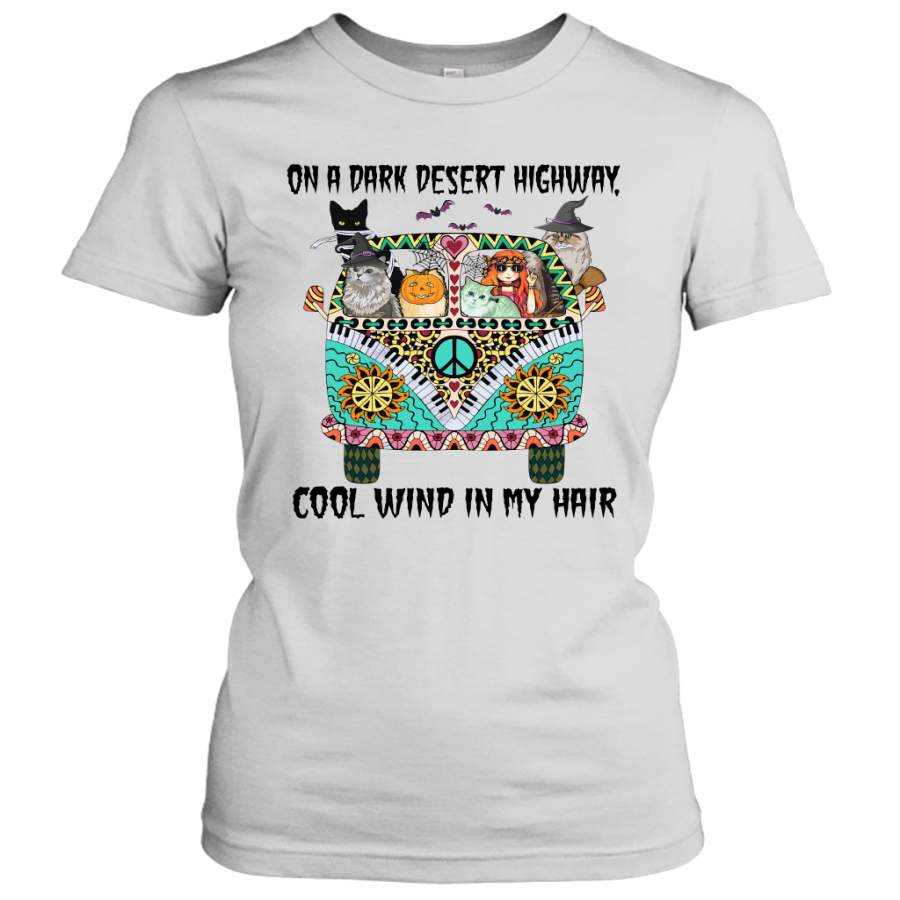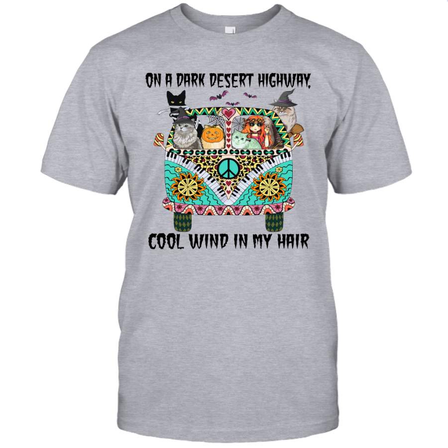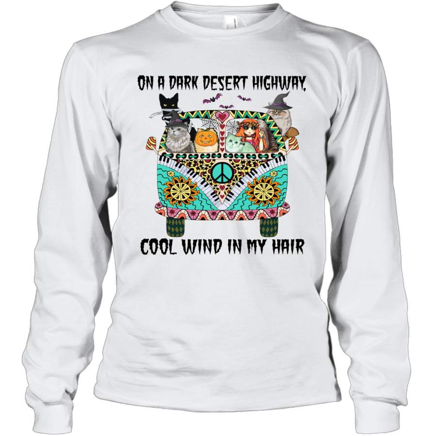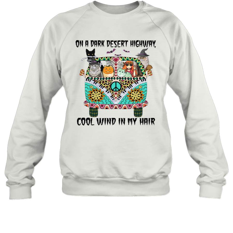 Hippie Girl And Cats Witch On A Dark Desert Highway Cool Wind In My Hair Halloween Shirt