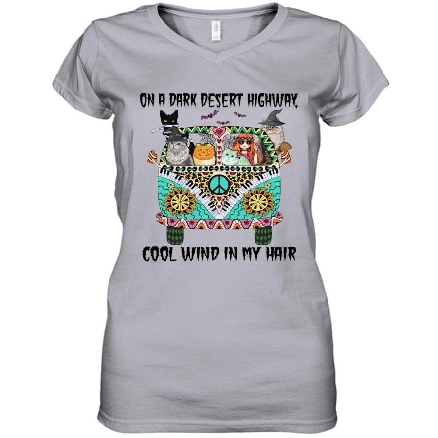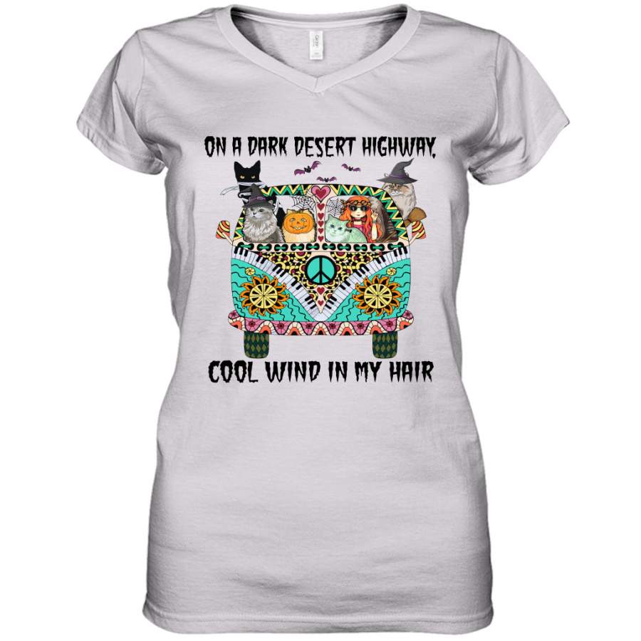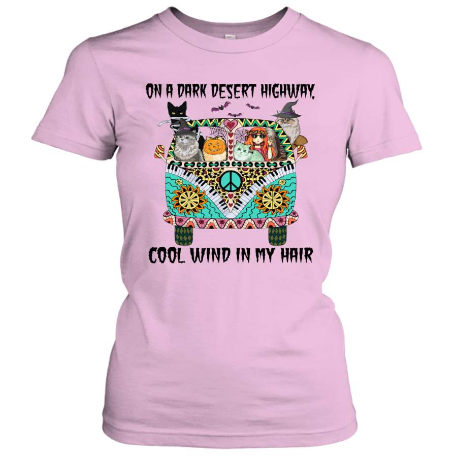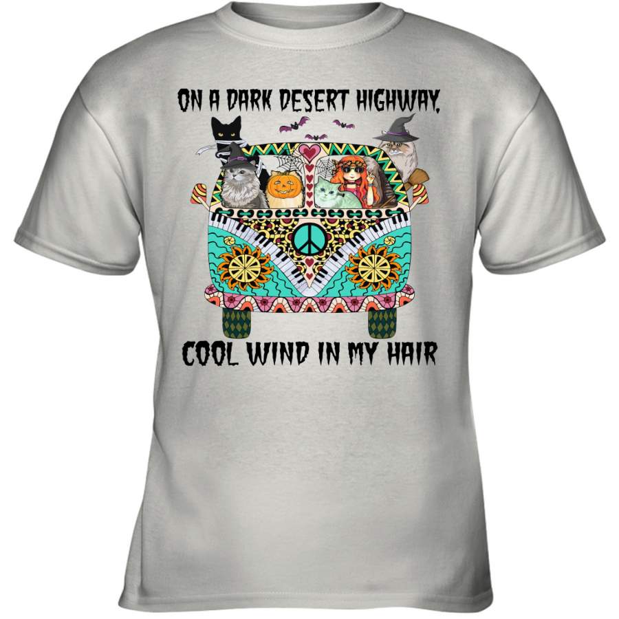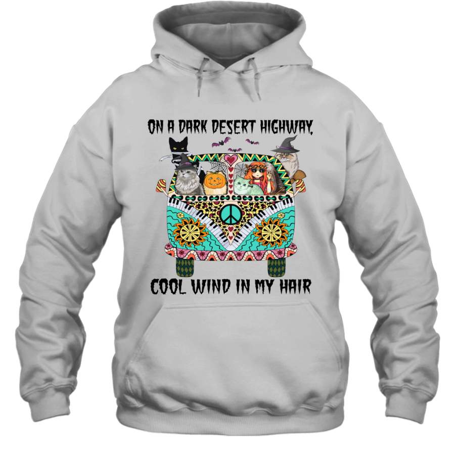 Hippie Girl And Cats Witch On A Dark Desert Highway Cool Wind In My Hair Halloween Shirt