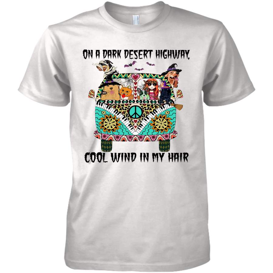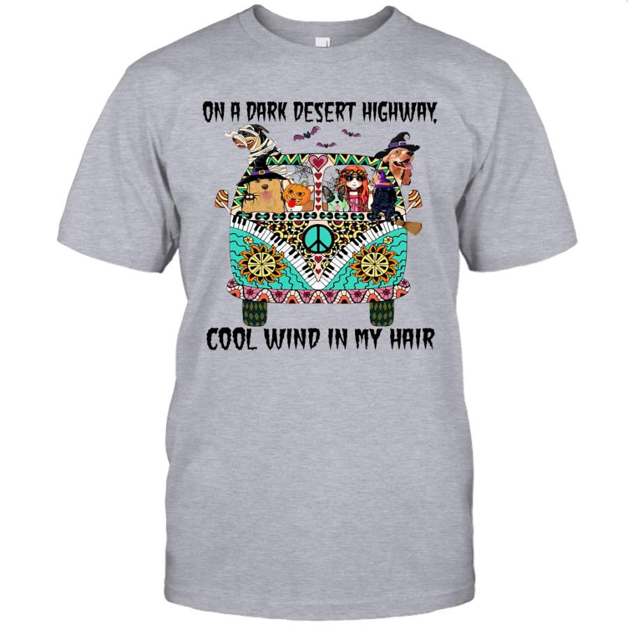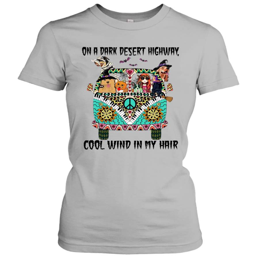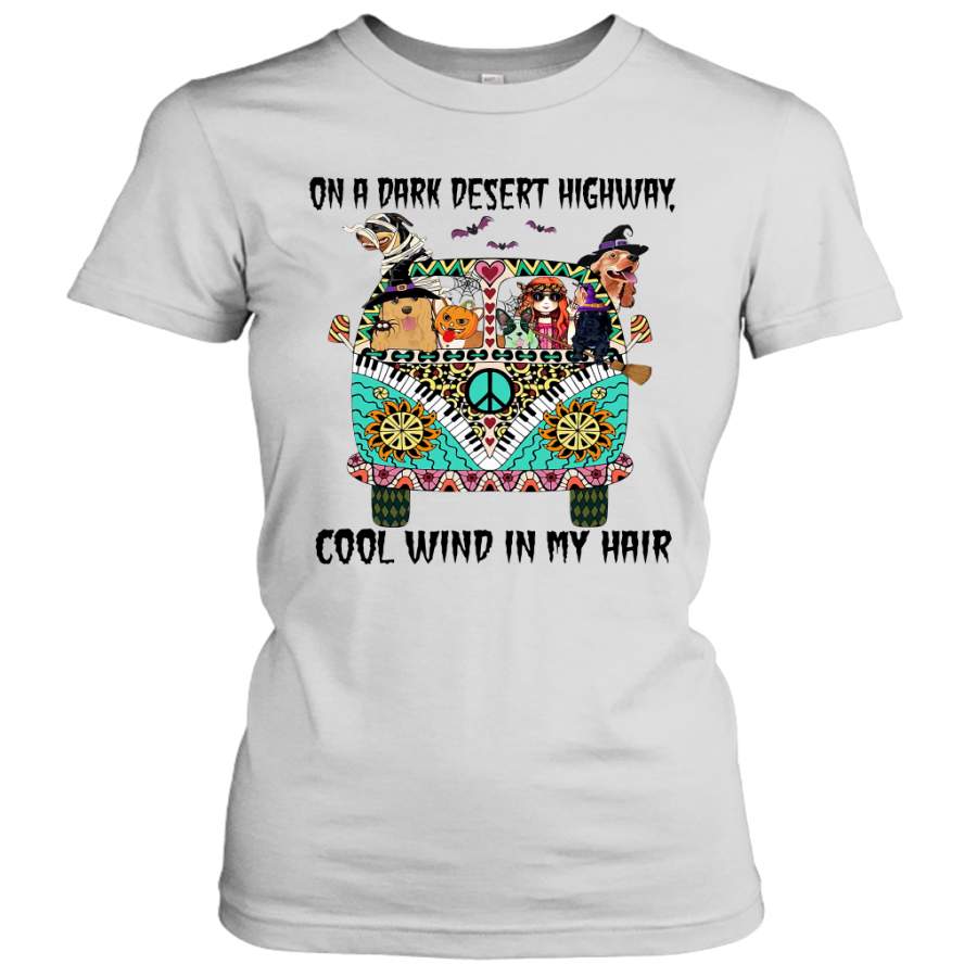 Hippie Girl And Dogs Witch On A Dark Desert Highway Cool Wind In My Hair Halloween Shirt