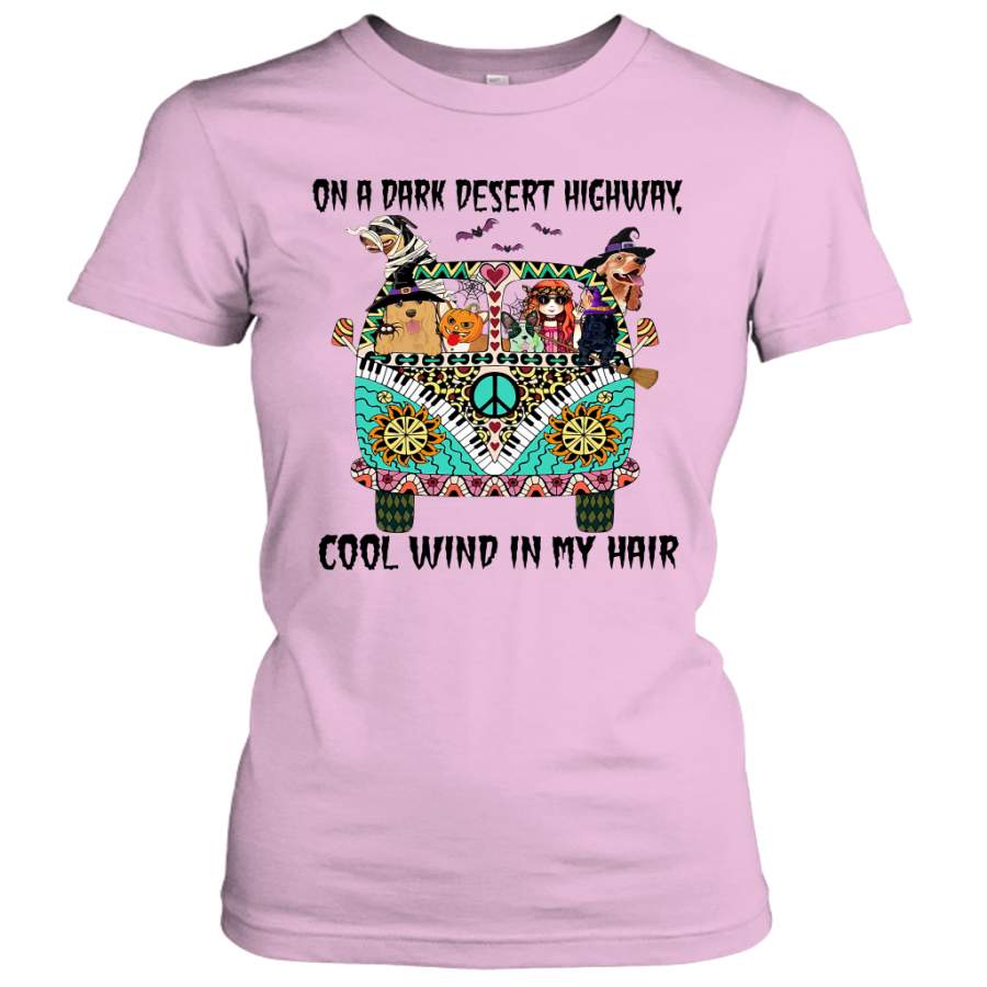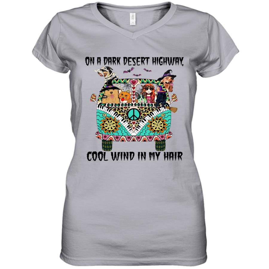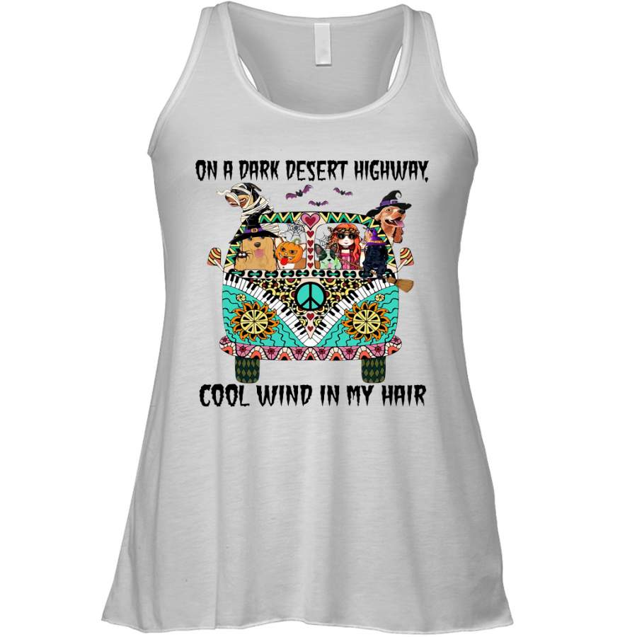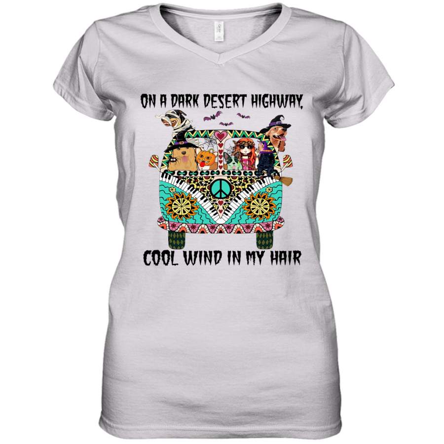 Hippie Girl And Dogs Witch On A Dark Desert Highway Cool Wind In My Hair Halloween Shirt
