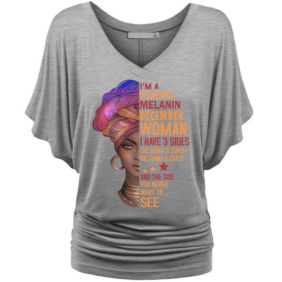 I Am A Strong Melanin December Woman I Have 3 Sides Batwing V-Neck Shirt