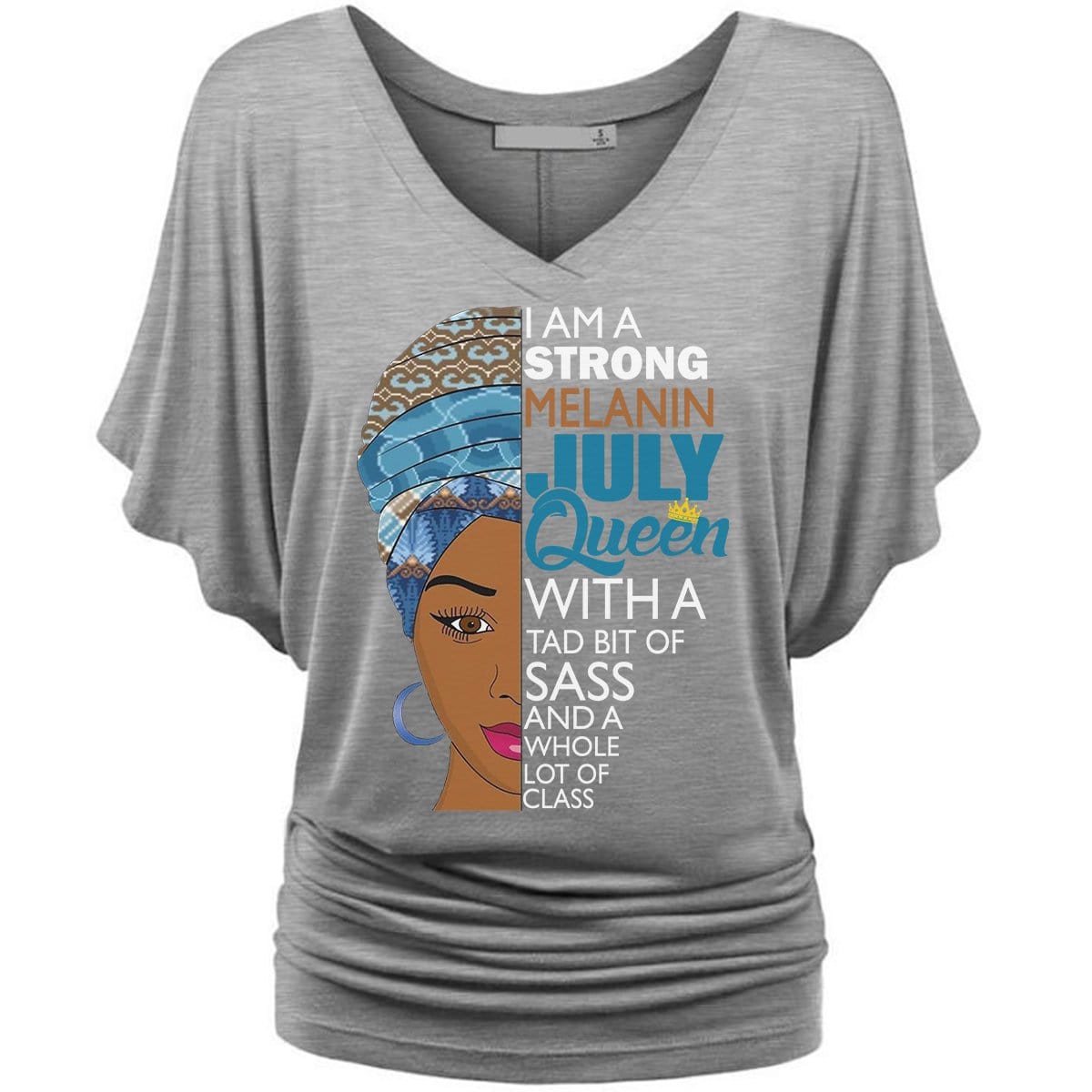 I Am A Strong Melanin July Queen Batwing V-Neck Shirt