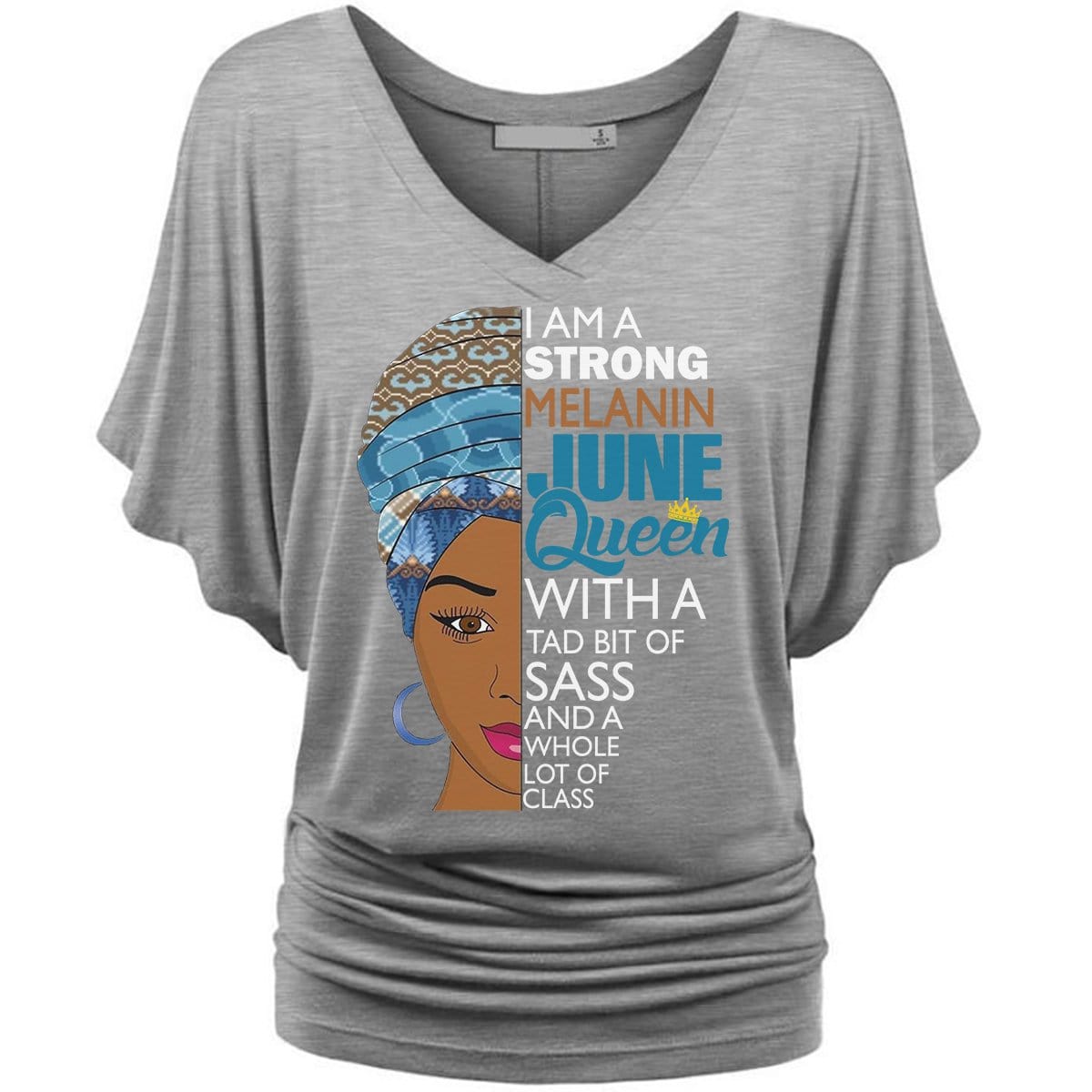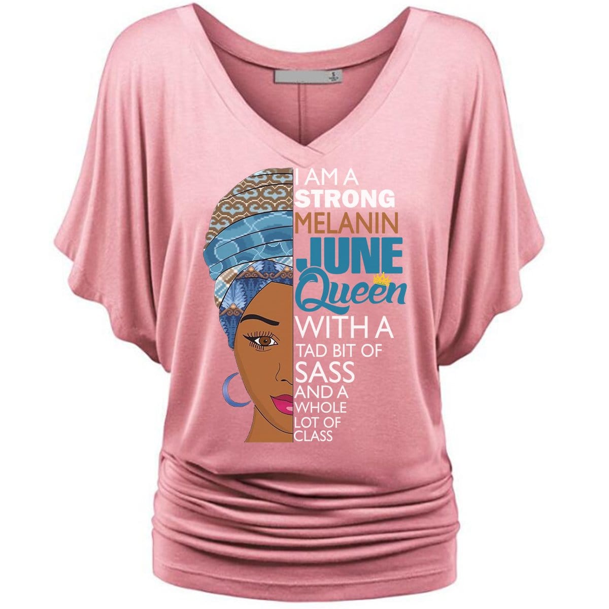 I Am A Strong Melanin June Queen Batwing V-Neck Shirt