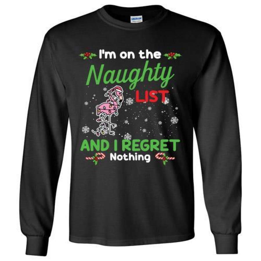 I’m On The Naughty List And I Regret Nothing Flamingo Christmas Long Shirt