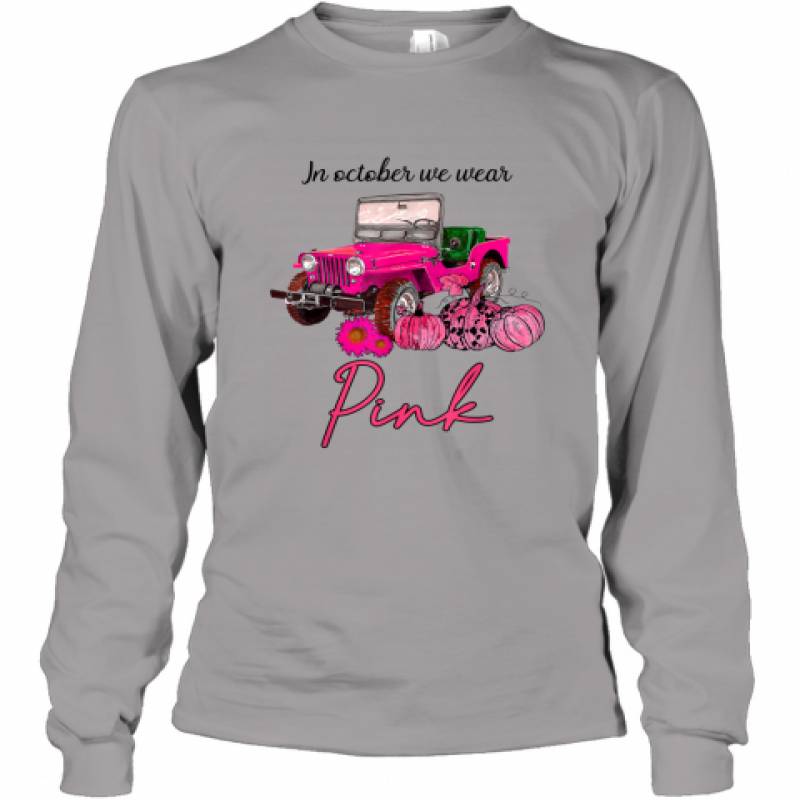 In October We Wear Pink Jeep and Pumpkin Breast Cancer shirt Long Sleeve T-Shirt