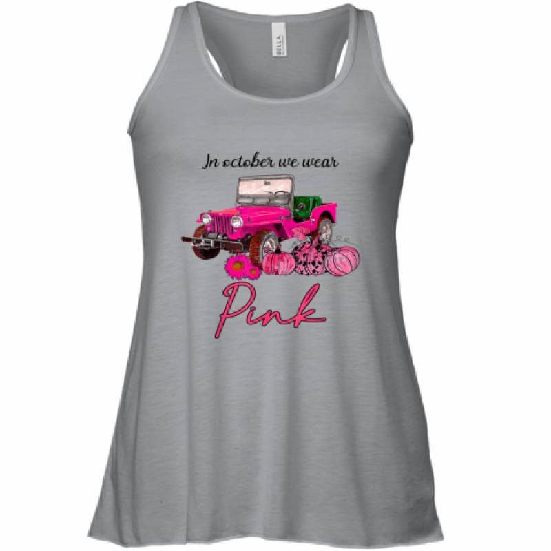 In October We Wear Pink Jeep and Pumpkin Breast Cancer shirt Racerback Tank