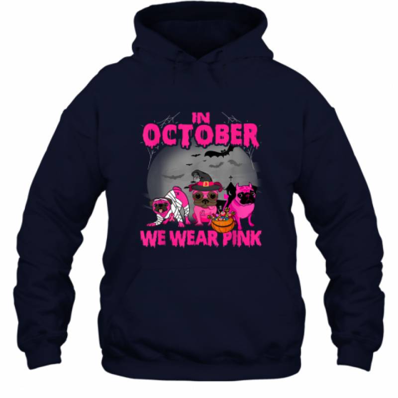 In October We Wear Pink Three Pugs Halloween Breast Cancer shirt Hoodie