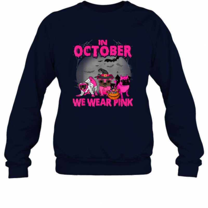 In October We Wear Pink Three Pugs Halloween Breast Cancer shirt Sweatshirt