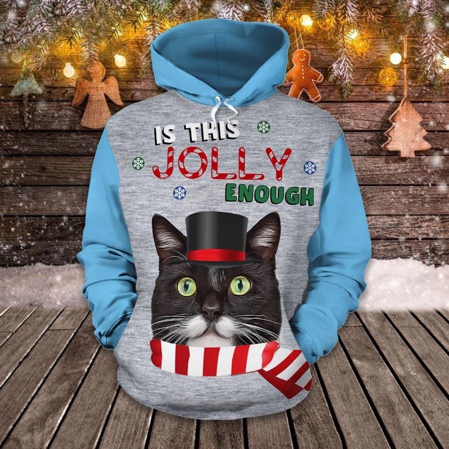 Is This Jolly Enough Tuxedo Cat Christmas 3D Hoodie Legging Set Combo
