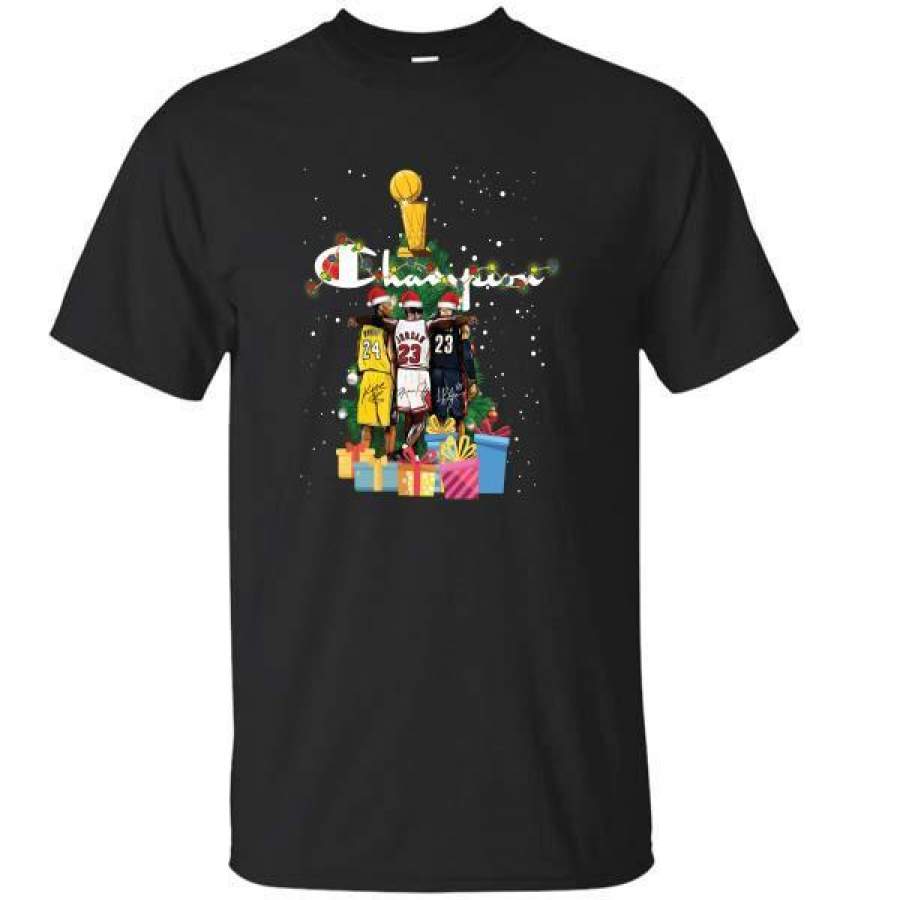 LeBron James Kobe Bryant Michael Jordan Champion Christmas Tree T-Shirt