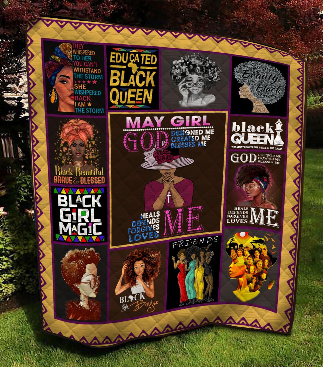 May Girl God Designed Created Blesses Me Black Queen Quilt