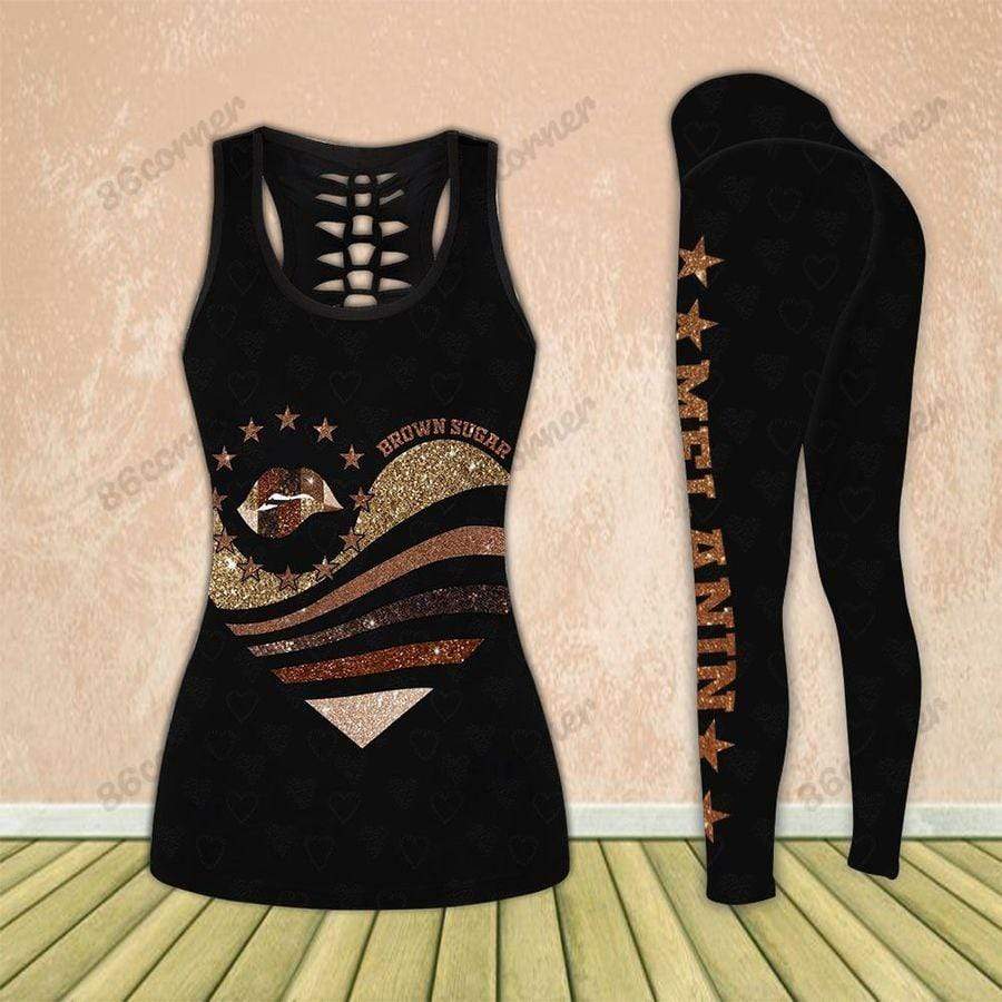 Melanin Brown Sugar Heart Hoodie Hollow Tank Top And Legging 3D
