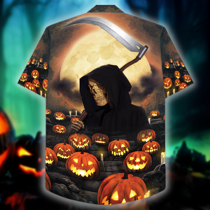 Moonlight Pumpkin Skull Halloween Hawaiian Shirt