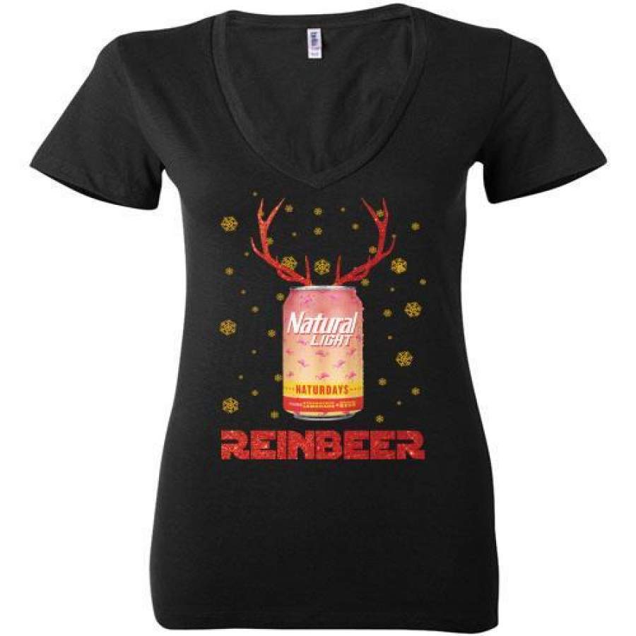 Natural Light Reinbeer Christmas Ladies Deep V-Neck