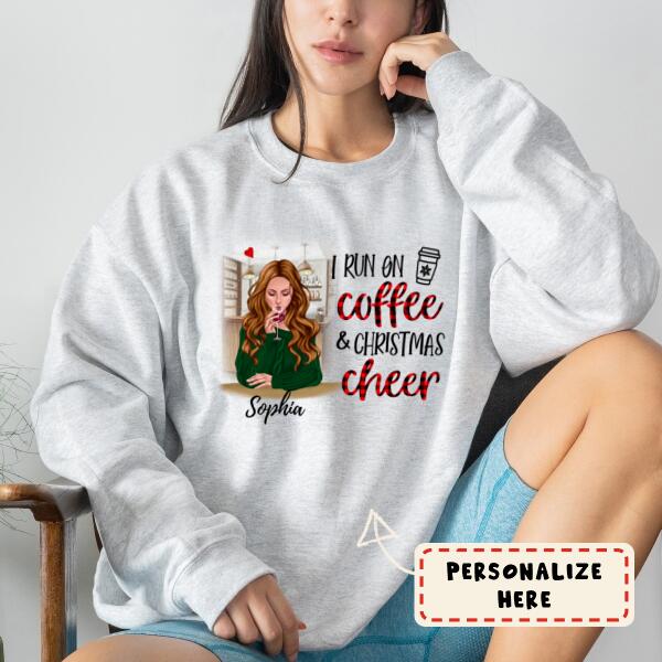 Personalized Coffee Girl And Christmas Cheer Sweatshirt, Gift For Girl