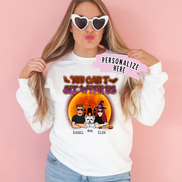 Personalized Dog Family Halloween Sweatshirt, Couple Halloween Sweatshirt, You Can’T Sit With Us Crewneck Sweatshirt