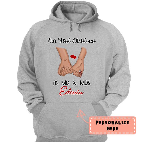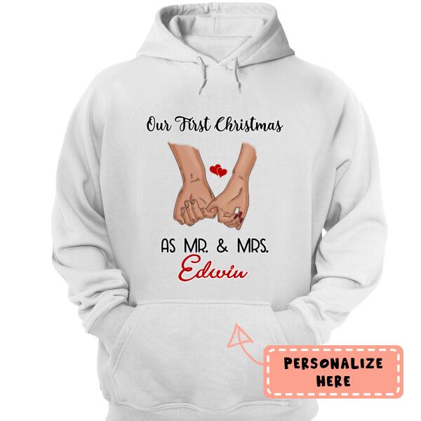 Personalized Holding Hand Our First Christmas As Mr & Mrs Hoodie, Couple Gift, Gift For Her , Gift For Him