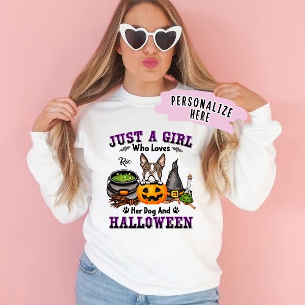 Personalized Just A Girl Who Loves Her Dog & Halloween Sweatshirt, Halloween Dog Crewneck Sweatshirt