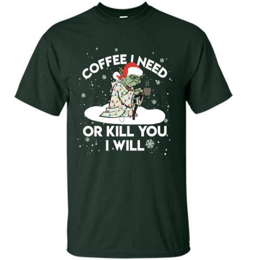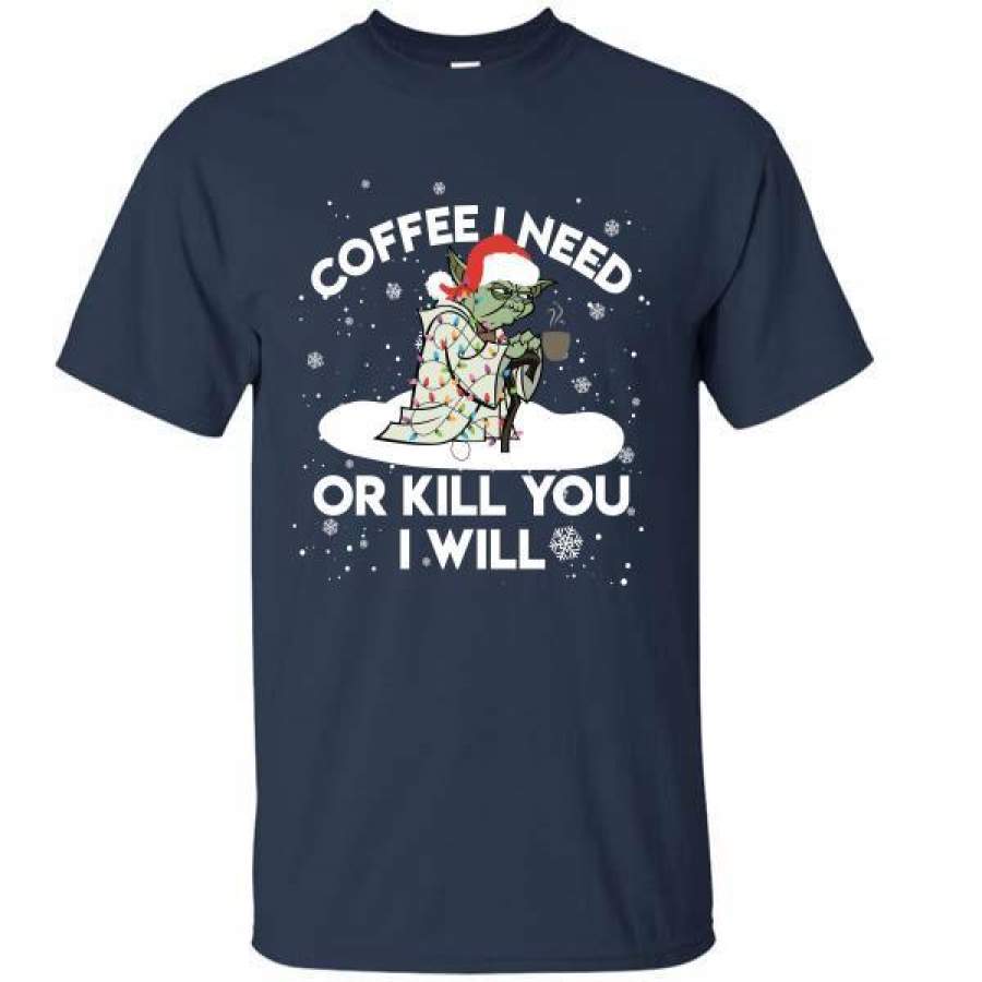 Santa Yoda Coffee I Need Op Kill You I Will Christmas T-Shirt