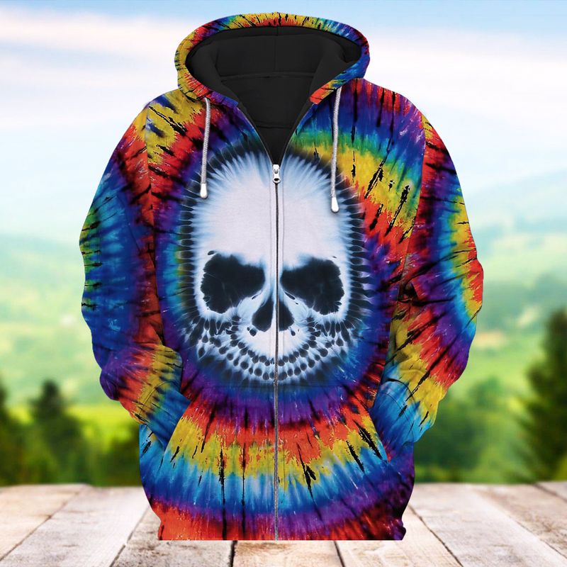 Skull Rainbow Tiedye Skull Shirts 3D Hoodie