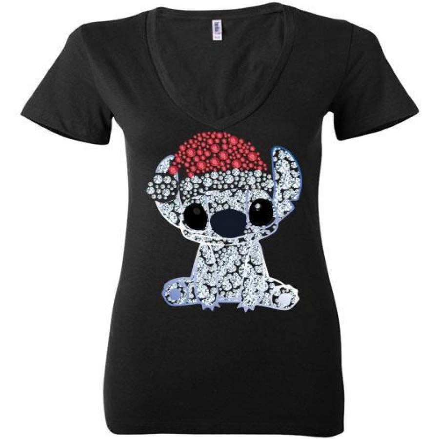 Stitch Diamond Merry Christmas Ladies Deep V-Neck