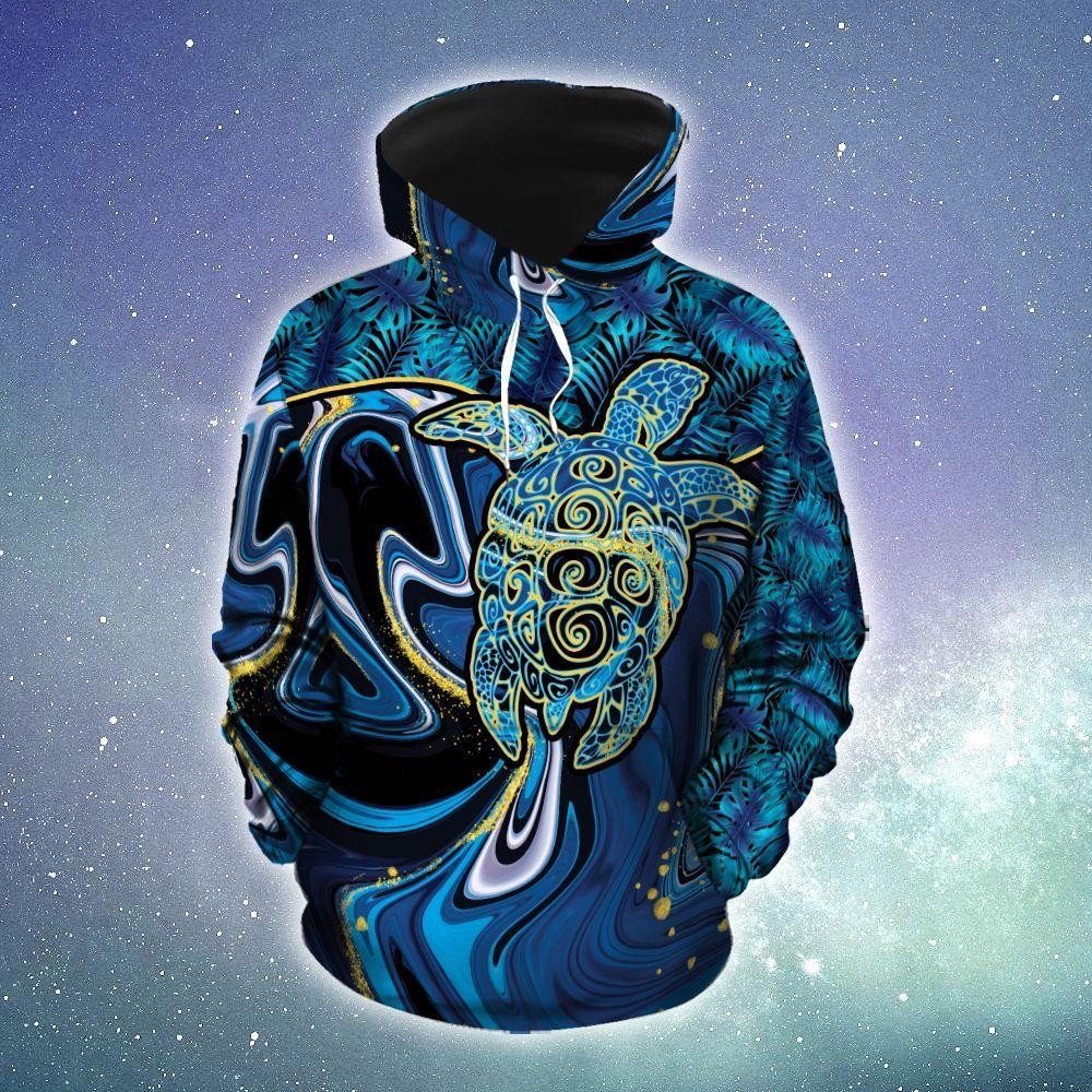 Turtle Blue Gold 3D Hoodie Legging Set Combo